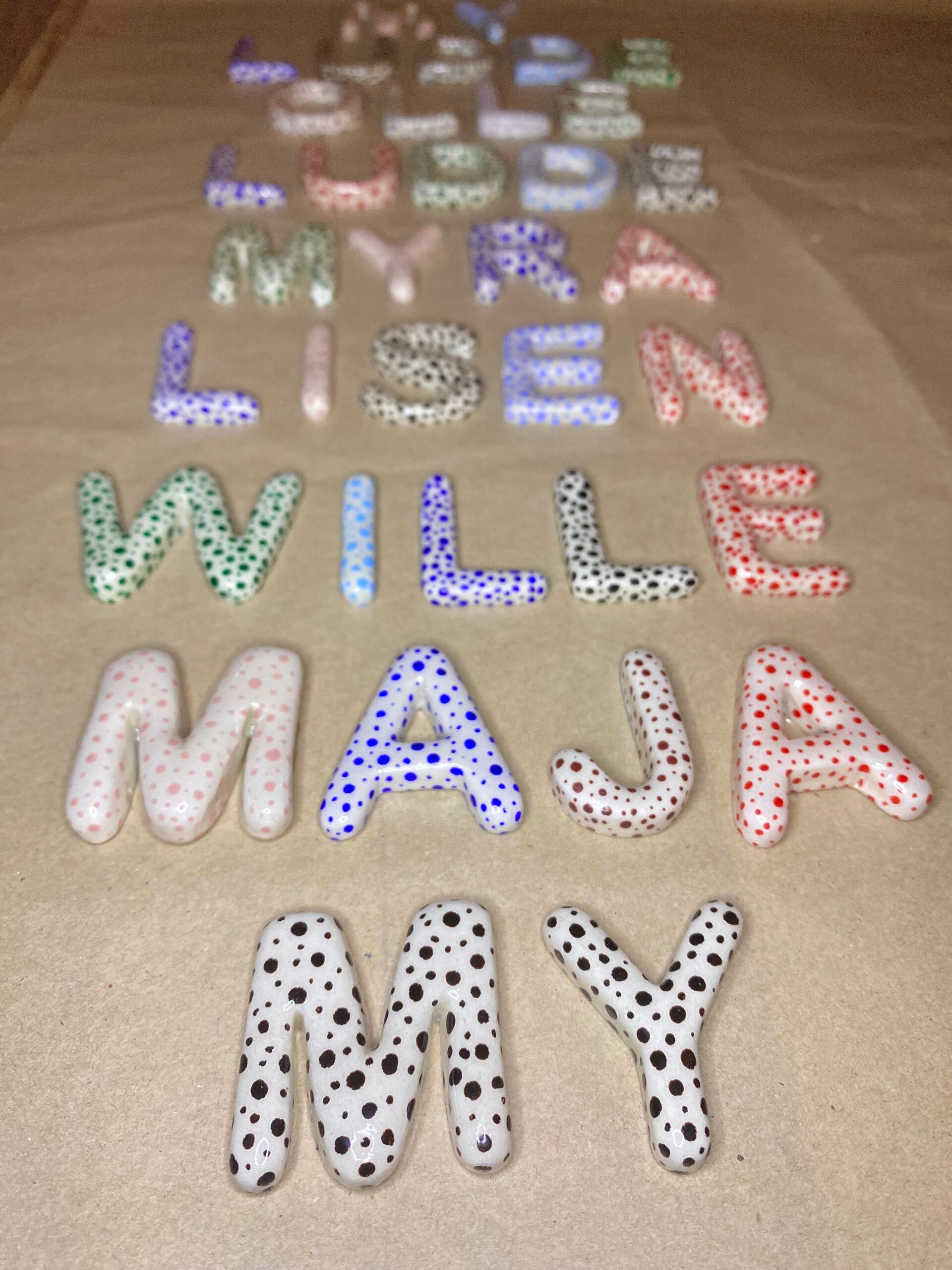 Du väljer själv färg och om du vill ha prickiga eller helfärgade på bokstäverna.